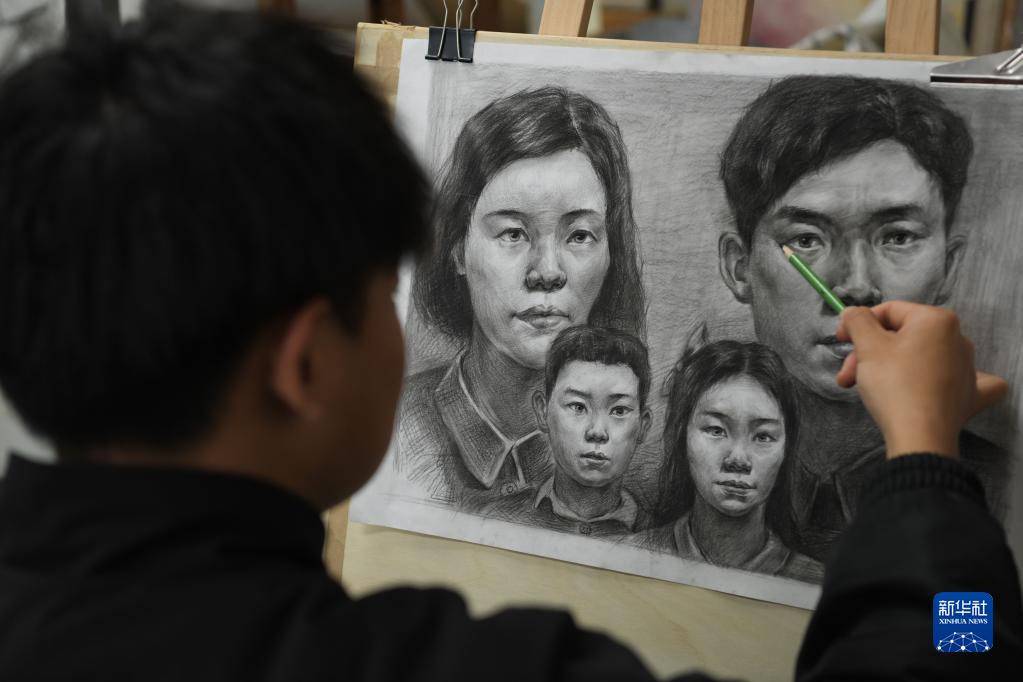 自2021年11月起,安徽師范大學(xué)美術(shù)學(xué)院師生組建志愿者團隊開(kāi)展“為烈士畫(huà)像”系列公益活動(dòng)。大學(xué)生志愿者通過(guò)查閱烈士資料、聽(tīng)取烈士后代描述等方式,用手中的畫(huà)筆還原烈士面貌。