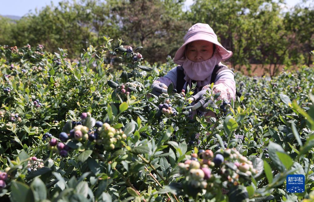 4月4日,村民在云南省澄江市龍街街道高西社區藍莓種植基地采摘藍莓。