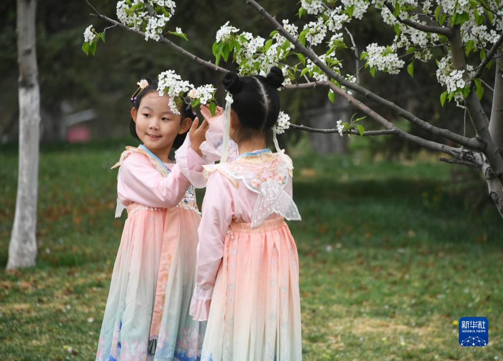 4月5日,小朋友在北京世界花卉大觀(guān)園游覽。
