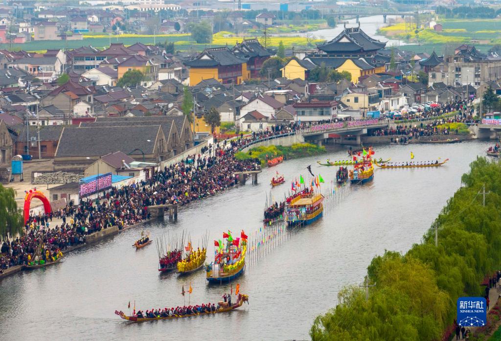 當日是清明節,江蘇省興化市舉行茅山會(huì )船盛會(huì ),船只和選手齊聚茅山西大河,參加競技和表演。茅山會(huì )船始于南宋,現已被列入國家級非物質(zhì)文化遺產(chǎn)名錄。