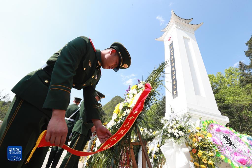 4月4日,武警貴州總隊貴陽(yáng)支隊組織官兵到黔靈山解放貴州革命烈士紀念碑開(kāi)展祭掃活動(dòng)。