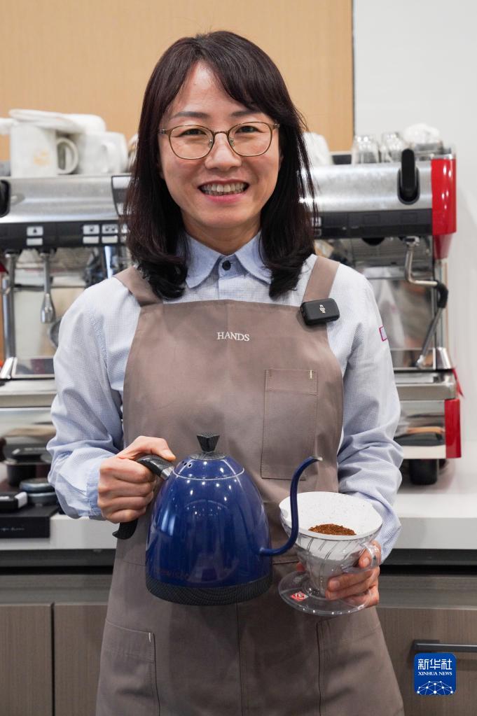 這是4月4日拍攝的黃春善。黃春善是吉林延吉一家餐飲公司的負責人,也是一名咖啡培訓師,目前運營(yíng)著(zhù)22家連鎖咖啡店。從上海一家外企辭職后,2009年黃春善回到延吉開(kāi)辦咖啡培訓班,帶動(dòng)年輕人創(chuàng )業(yè),目前在延吉已培訓了超過(guò)1000多名咖啡從業(yè)者。