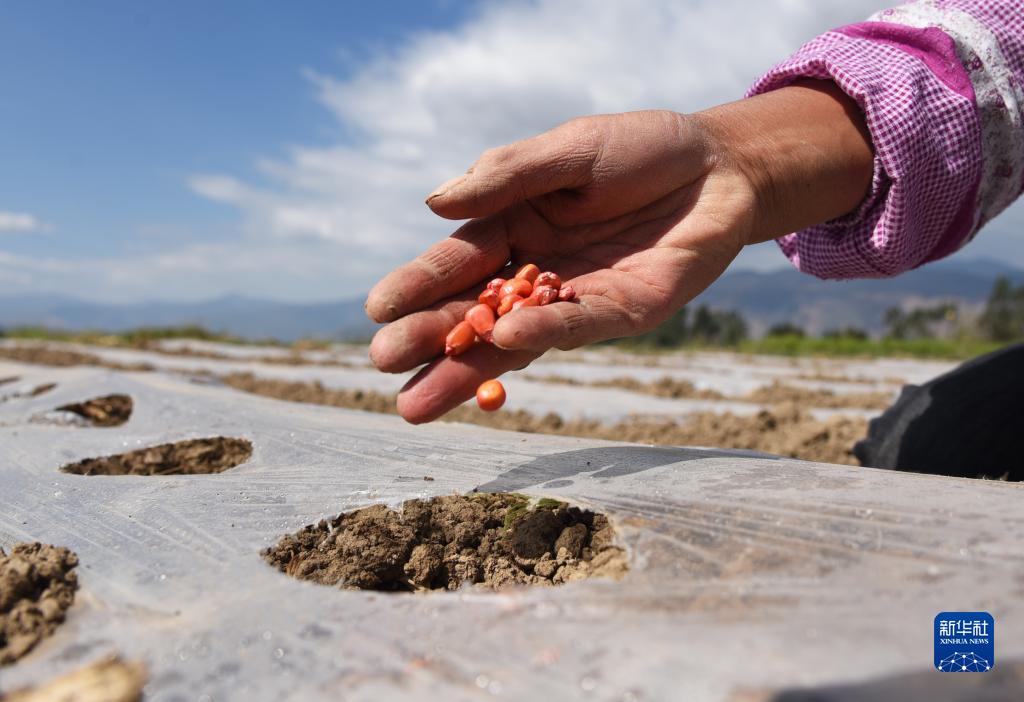 4月5日,農民在云南省大理白族自治州鶴慶縣辛屯鎮的農田里種玉米。