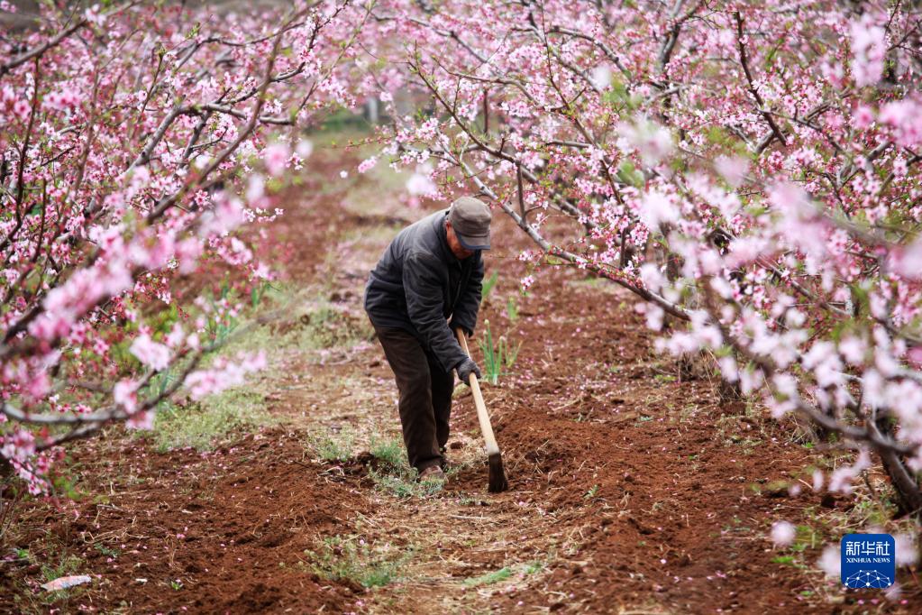 4月5日,山東省臨沂市平邑縣地方鎮紅石嶺村果農在田間勞作。
