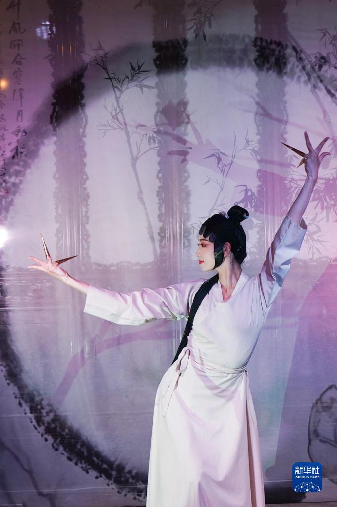 4月5日,演員在蘇州網(wǎng)師園內表演舞蹈。