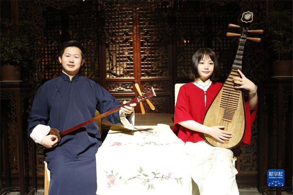 4月5日,演員在蘇州網(wǎng)師園內表演評彈。