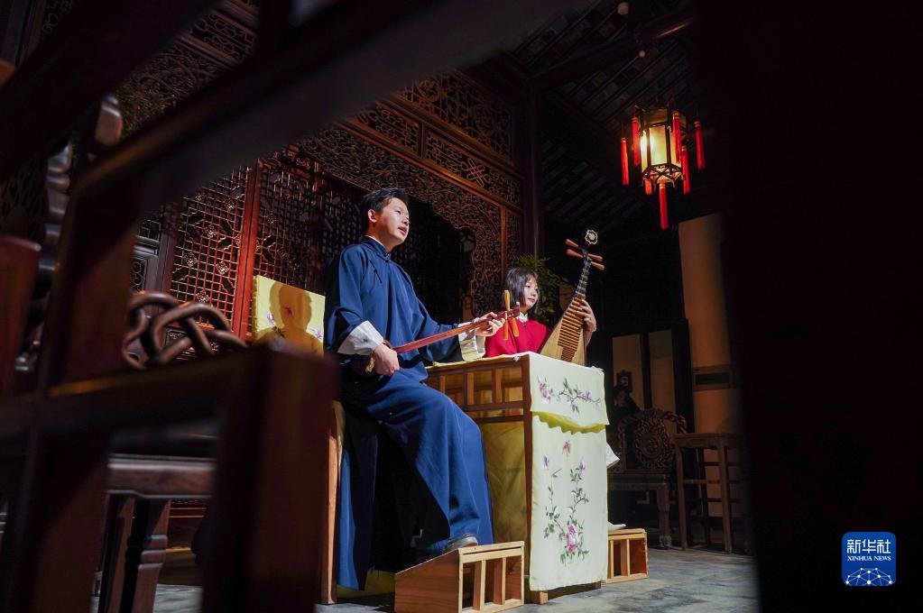 近年來(lái),江蘇省蘇州市網(wǎng)師園通過(guò)數字化展示手段,結合江南絲竹演奏、昆曲、評彈等傳統曲藝表演,不斷探索園林夜游發(fā)展新模式,將古典美學(xué)融入現代生活,為游客展示夜間的園林魅力。
