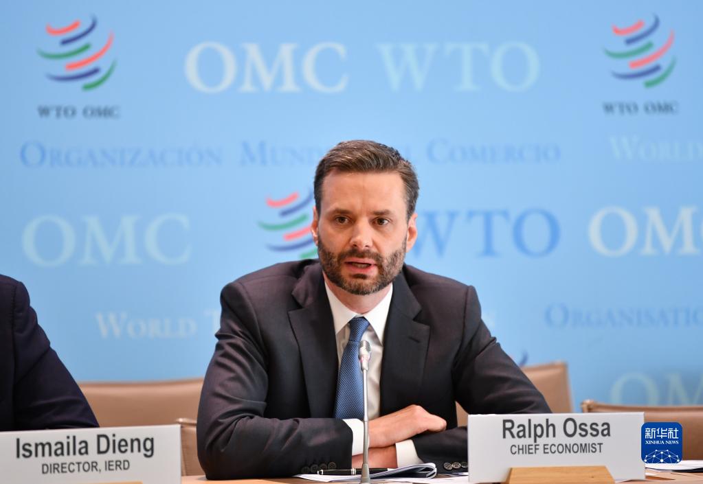4月5日,在瑞士日內瓦的世貿組織總部,世貿組織首席經(jīng)濟學(xué)家拉爾夫·奧薩在新聞發(fā)布會(huì )上講話(huà)。