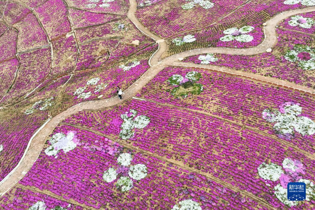 近日,河北省遷西縣舊城鄉北孫家峪村大黑汀水庫東岸500多畝芝櫻競相綻放,吸引游客前來(lái)賞花游玩。