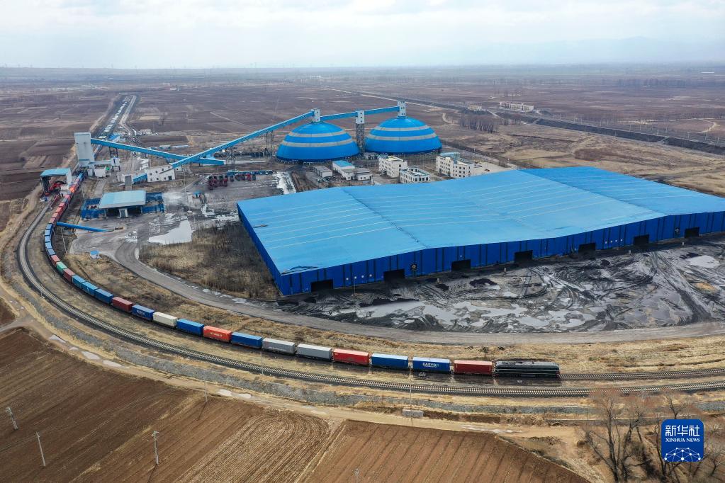 4月6日,首列中歐班列駛出河北張家口萬(wàn)全西站(無(wú)人機照片)。