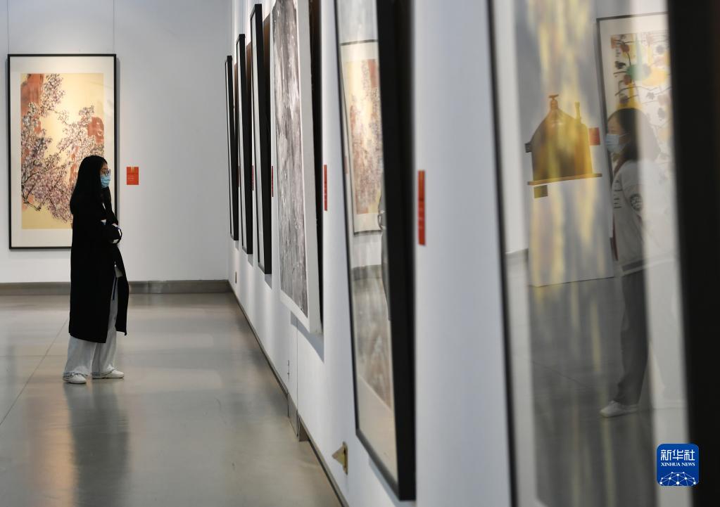 4月6日,觀(guān)眾在長(cháng)安畫(huà)派藝術(shù)中心觀(guān)賞美術(shù)作品。