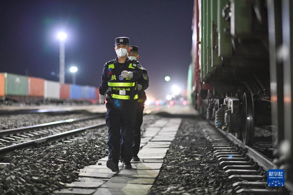 4月4日,崔洪武(前)和同事列隊前往執勤現場(chǎng)。新華社記者 李響 攝