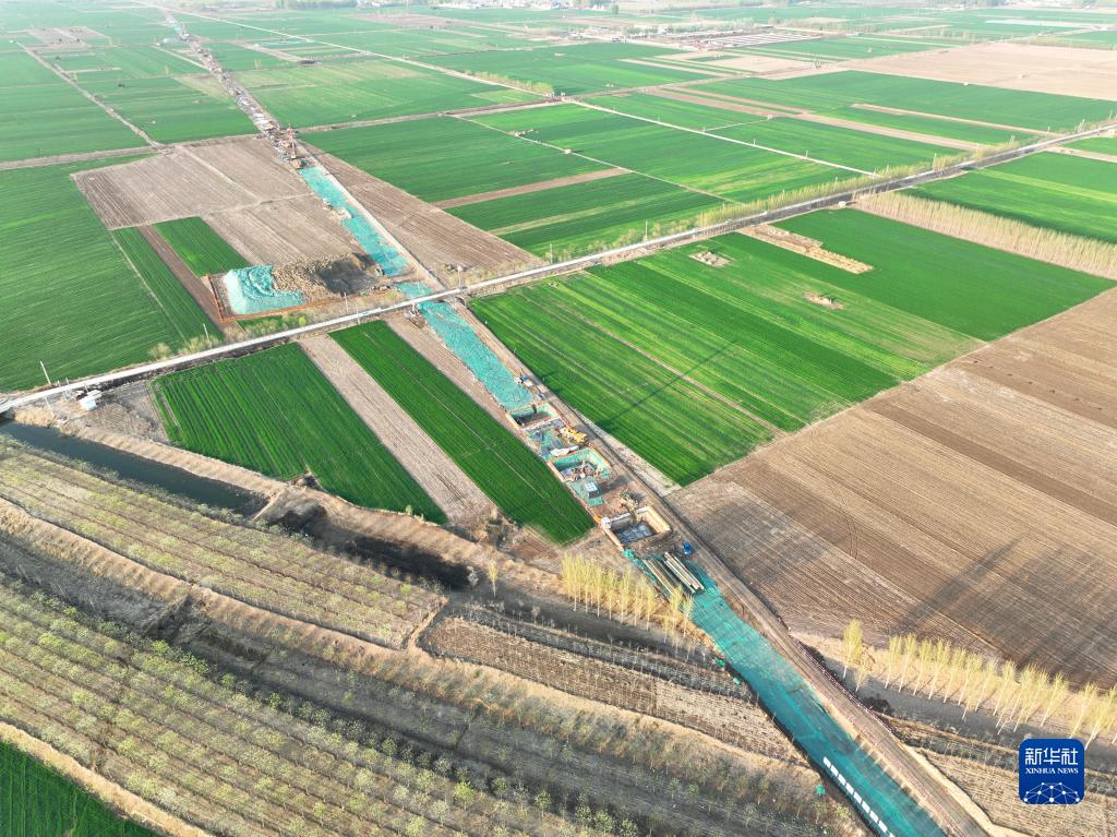 4月6日,雄商高鐵一線(xiàn)工人在位于河北省任丘市的建設現場(chǎng)施工。