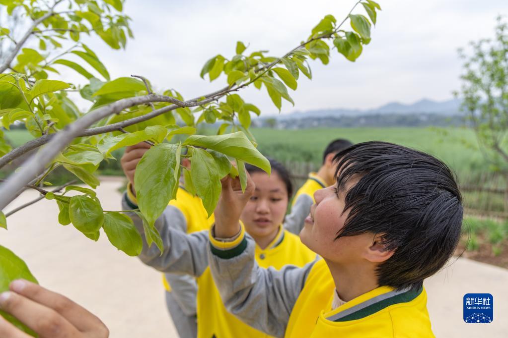 3月31日,在重慶廣陽(yáng)島,重慶市特殊教育中心的視力障礙學(xué)生輕輕觸摸植物綠葉,感受春的氣息。