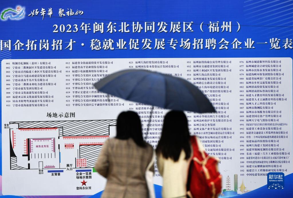 4月7日拍攝的“2023年閩東北協(xié)同發(fā)展區(福州)國企拓崗招才·穩就業(yè)促發(fā)展專(zhuān)場(chǎng)招聘會(huì )”現場(chǎng)。