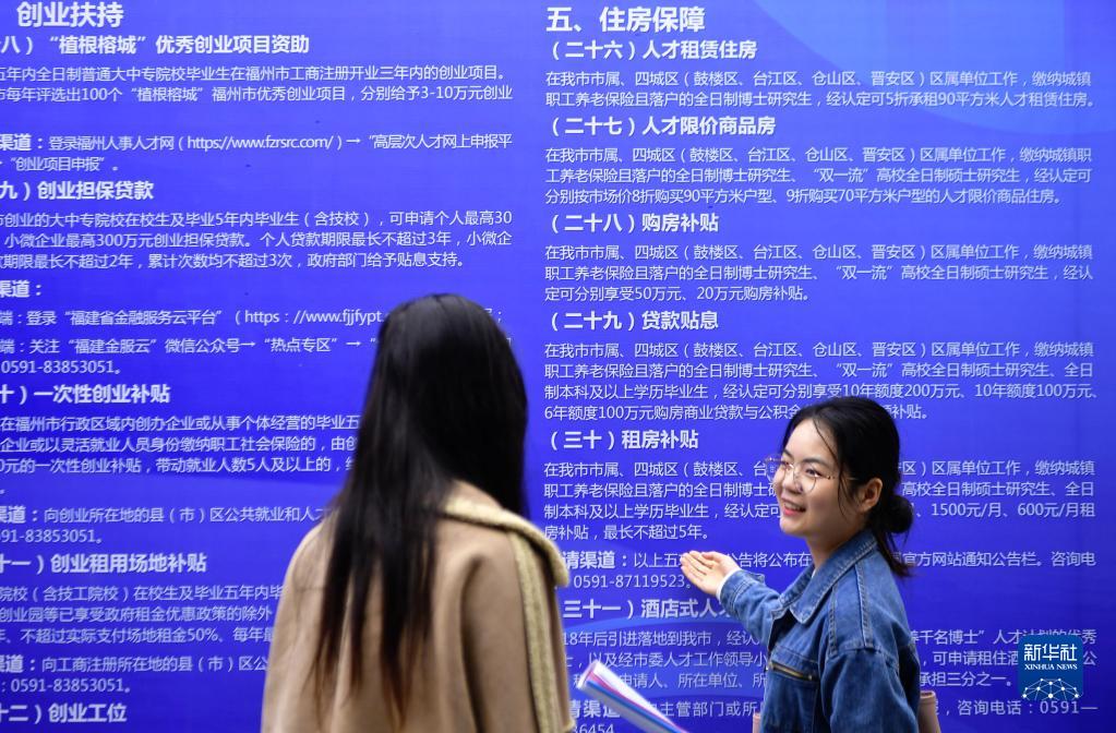 4月7日,高校畢業(yè)生在招聘會(huì )現場(chǎng)觀(guān)看高校畢業(yè)生來(lái)榕留榕就業(yè)創(chuàng )業(yè)優(yōu)惠政策。