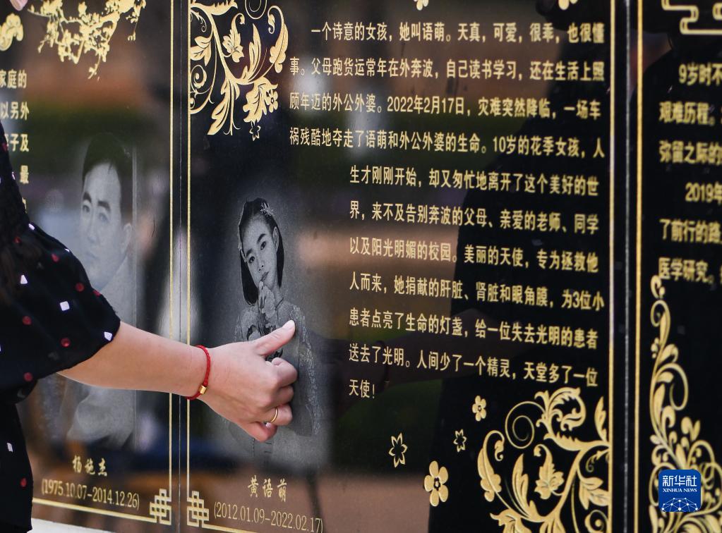 4月7日,一位遺體捐獻者的母親輕輕撫摸女兒的畫(huà)像。