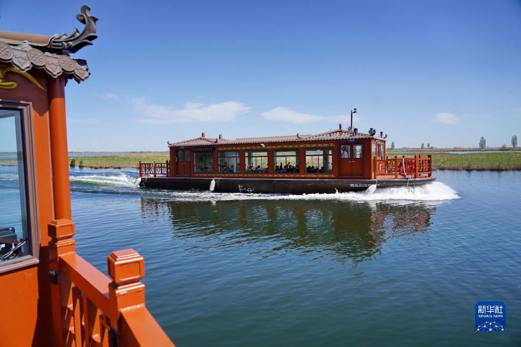 4月7日,處于試運營(yíng)階段的白洋淀“水上巴士”項目畫(huà)舫船在白洋淀內行駛。
