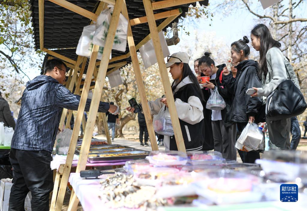 4月7日,游客在南長(cháng)灘村選購特色小吃。