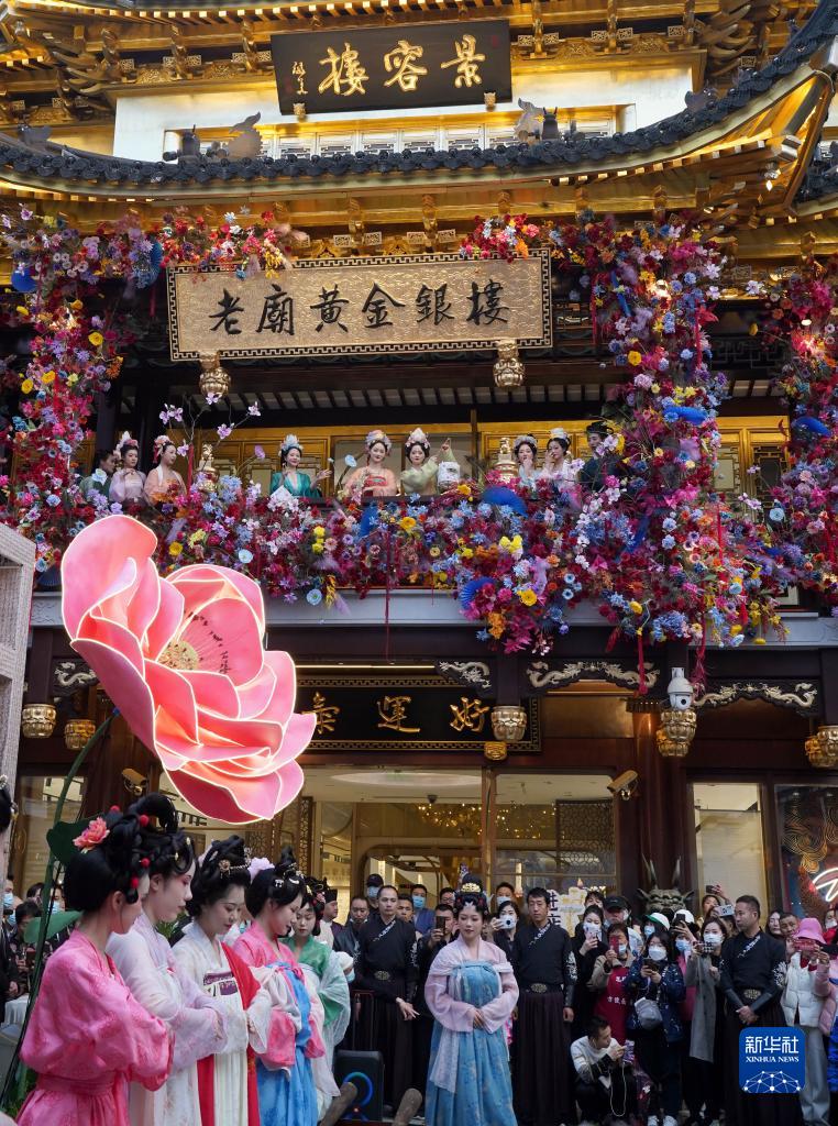 4月7日在豫園商城黃金廣場(chǎng)拍攝的古風(fēng)演藝活動(dòng)。