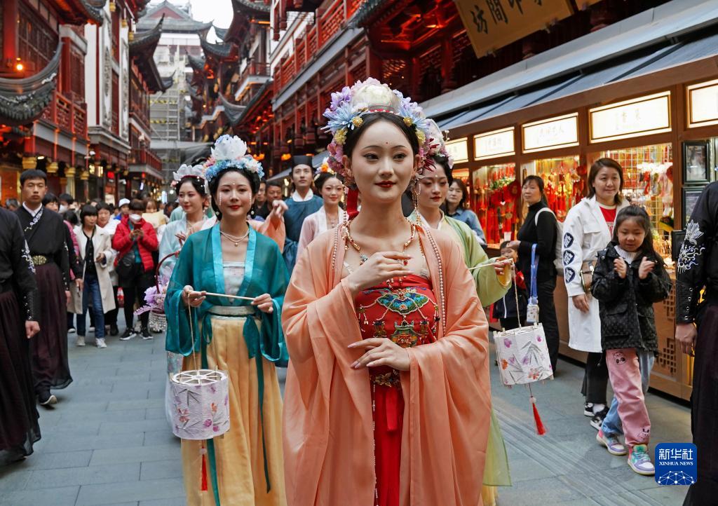 當日,上海豫園2023“仲春花朝節”沉浸式游園系列活動(dòng)拉開(kāi)帷幕。作為“節氣江南”系列活動(dòng)之一,豫園“仲春花朝節”以古時(shí)花朝節為靈感,通過(guò)花車(chē)、巡游、市集、裝置等,讓游客感受?chē)L(fēng)韻味,暢游春日豫園。