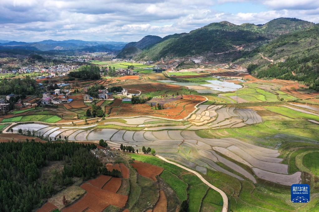 這是4月6日在貴州省岑鞏縣水尾鎮新場(chǎng)村拍攝的雜交水稻制種基地(無(wú)人機照片)。