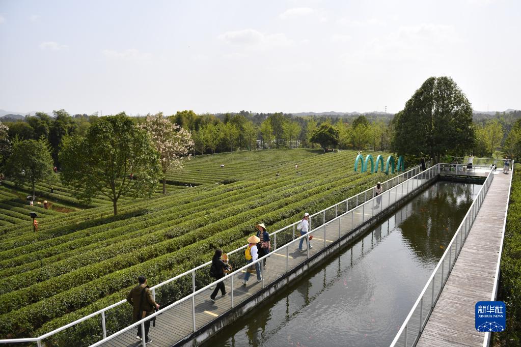 4月7日,游客在湖南省長(cháng)沙市長(cháng)沙縣金井鎮的金井茶旅融合產(chǎn)業(yè)園參觀(guān)游玩。
