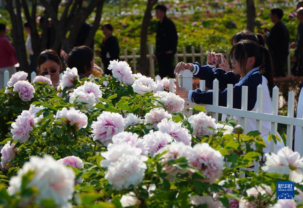 4月7日,在山東省菏澤市牡丹區的曹州牡丹園,游客在觀(guān)賞牡丹花。