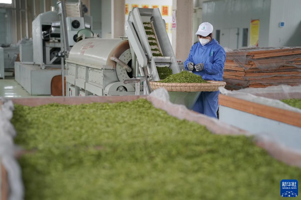 4月5日,漢中市南鄭區青樹(shù)鎮一家茶企的工作人員在生產(chǎn)線(xiàn)上工作。