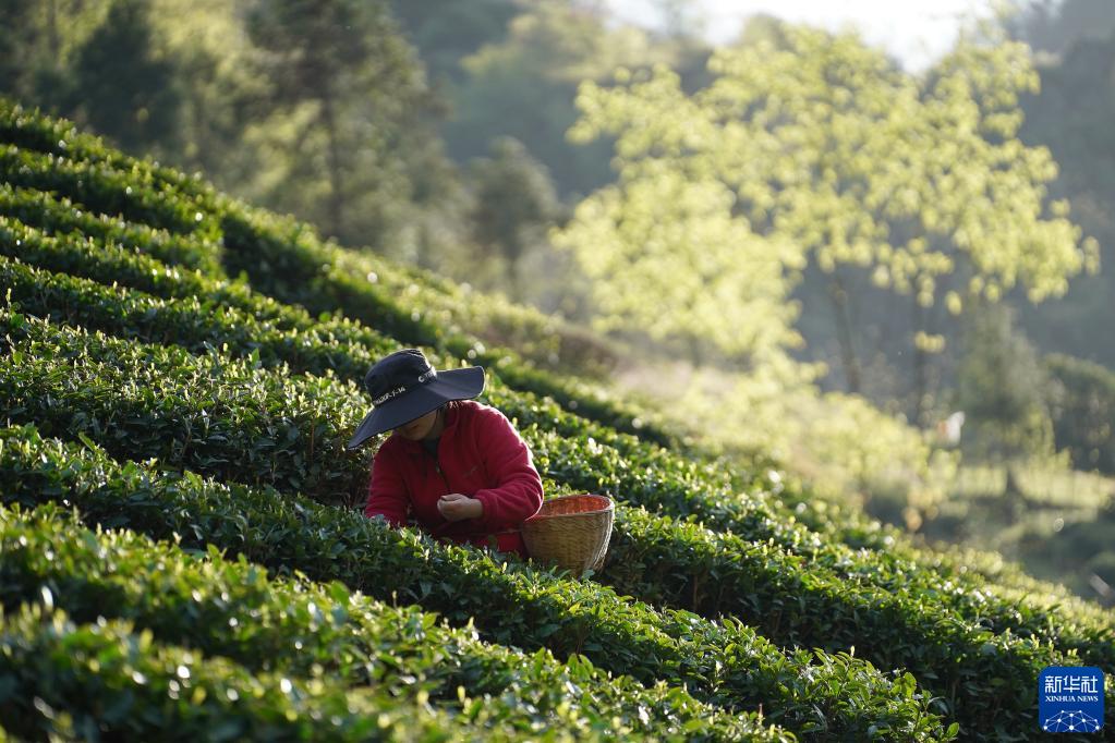3月30日,茶農在安康市漢濱區雙龍鎮一處茶園采茶。