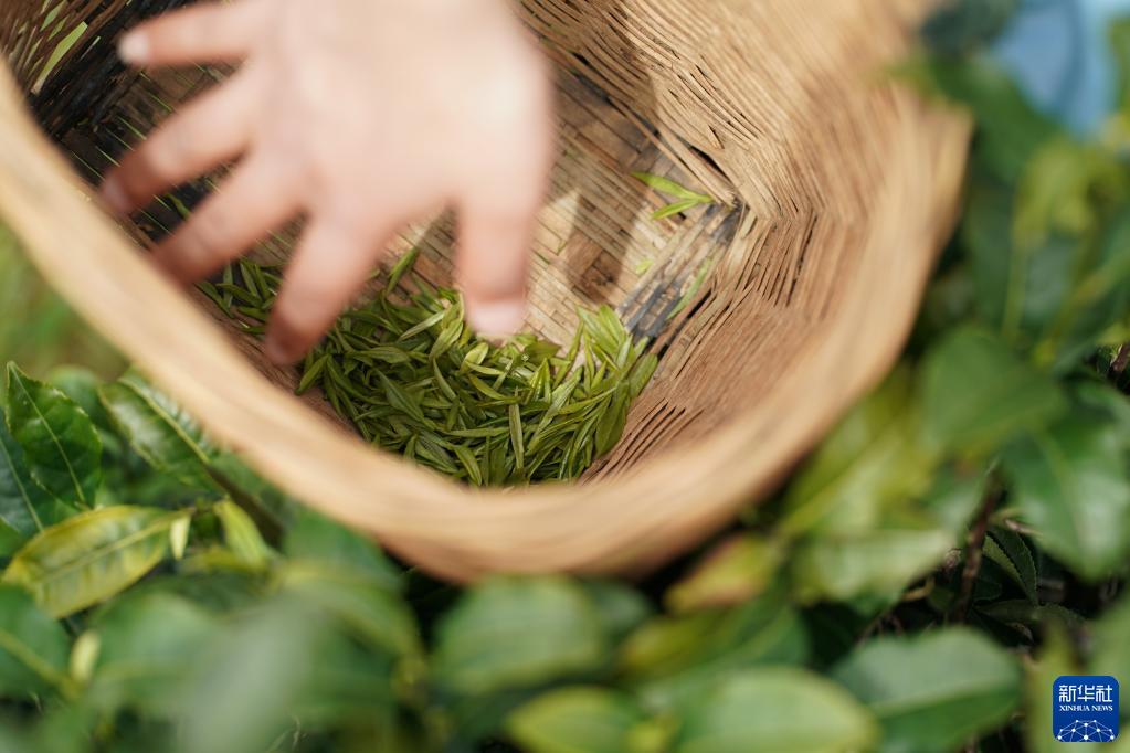 3月29日,安康市紫陽(yáng)縣職業(yè)教育中心茶葉專(zhuān)業(yè)的學(xué)生在該縣洄水鎮的茶園采茶。