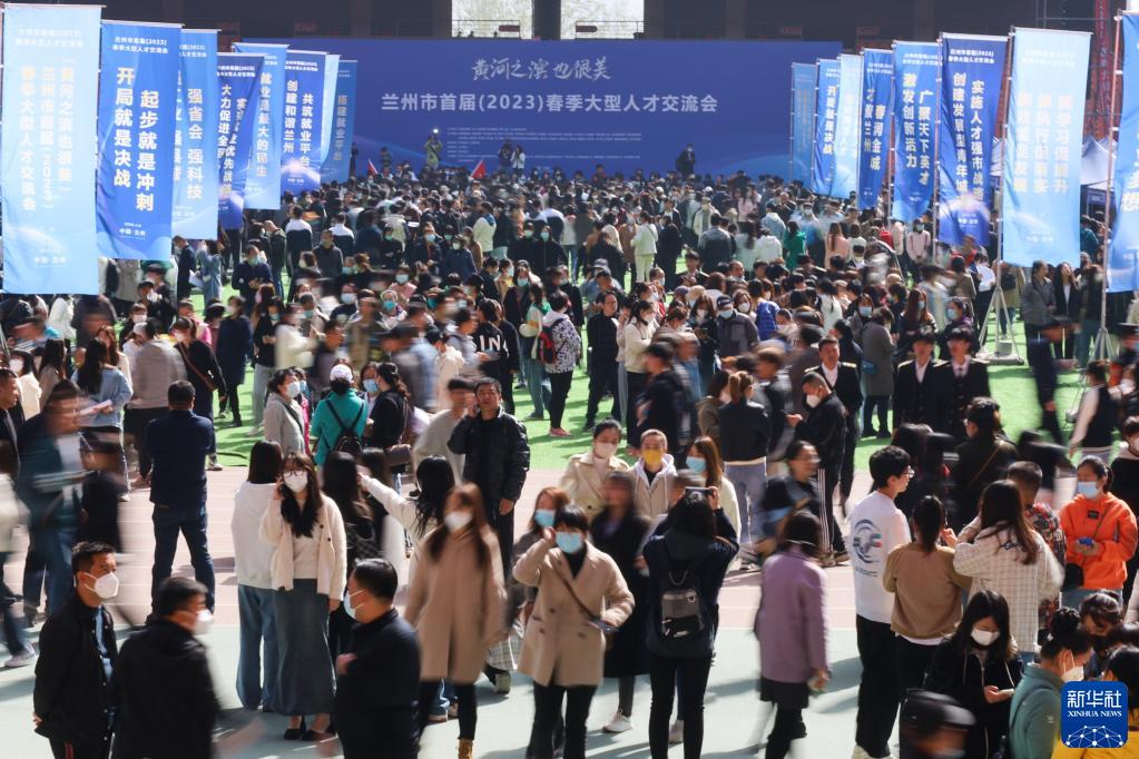 4月8日拍攝的蘭州市首屆(2023)春季大型人才交流會(huì )現場(chǎng)。