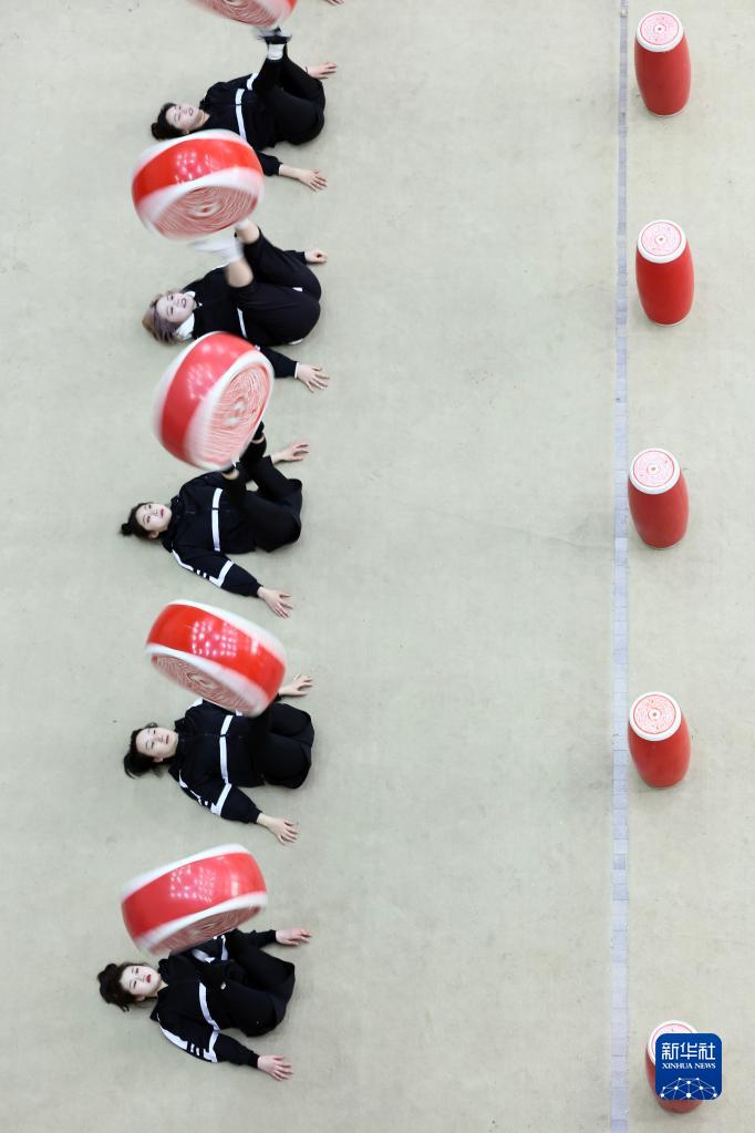 3月31日,演員們在位于江蘇省鹽城市建湖縣的江蘇省雜技團訓練。