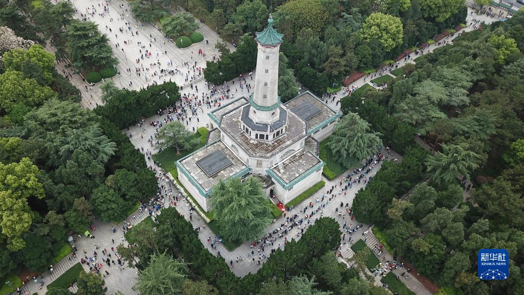 4月5日,市民在湖南烈士公園祭奠英烈(無(wú)人機照片)。