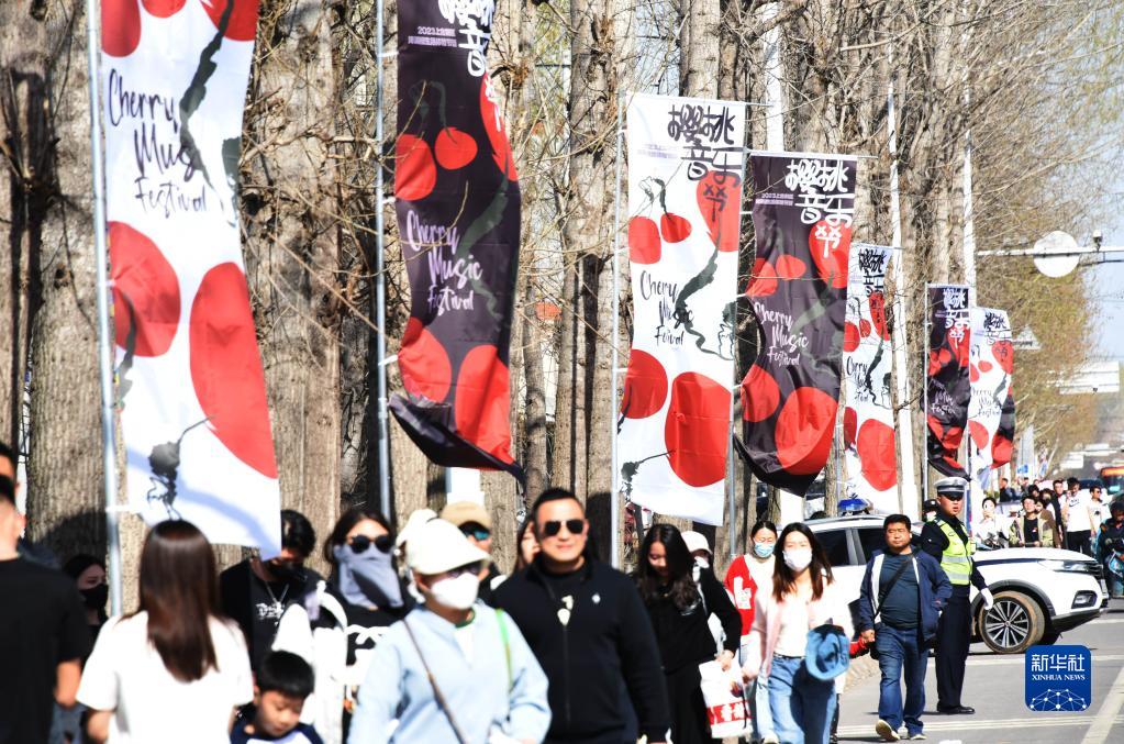 4月8日,觀(guān)眾徒步前往櫻桃音樂(lè )節會(huì )場(chǎng)。
