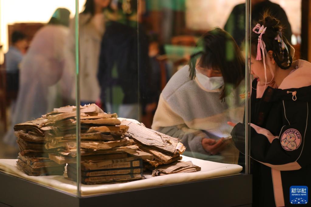 4月8日,觀(guān)眾在“繼往開(kāi)來(lái) 國韻書(shū)香——古籍保護與傳承特展”中觀(guān)看未修復的破損古籍。