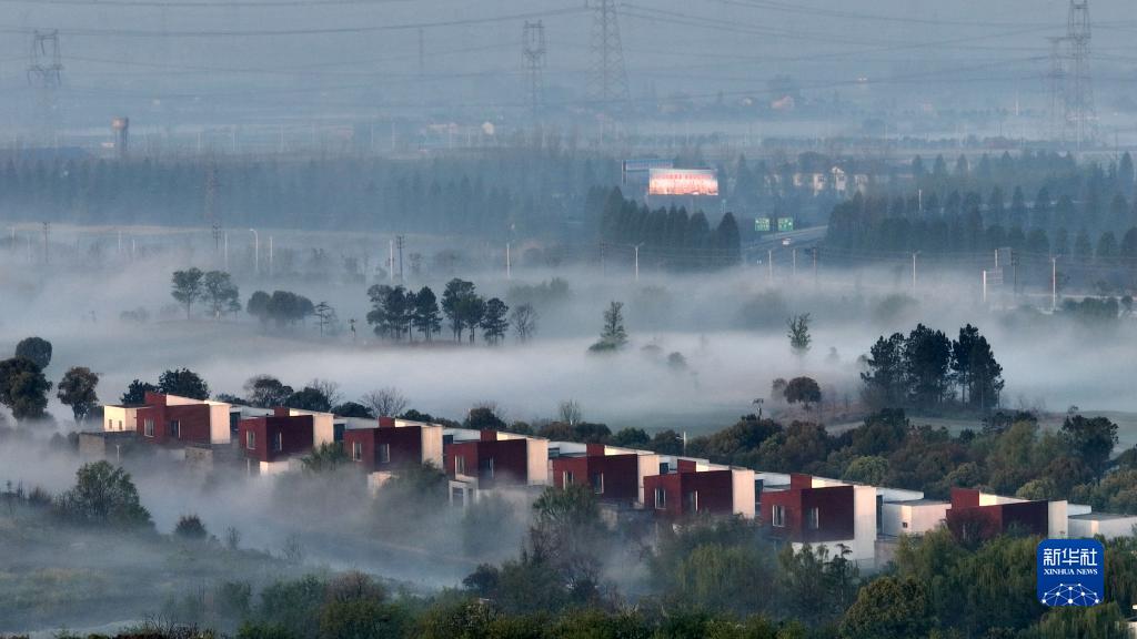 日出時(shí)分,江蘇省泰州市姜堰區的溱湖國家濕地公園及其周邊晨霧繚繞,構成一幅美麗的春晨畫(huà)卷。