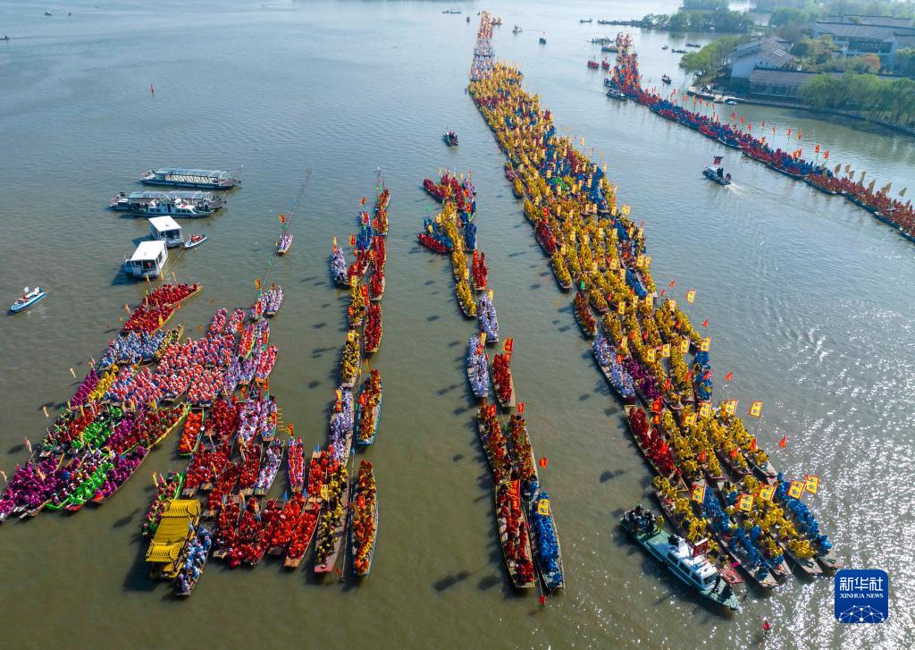 當日,2023年泰州姜堰溱潼會(huì )船節在江蘇省泰州市姜堰區溱湖國家濕地公園開(kāi)幕,數百條船只和萬(wàn)余名會(huì )船選手云集溱湖,演繹歷久彌新的民俗畫(huà)卷。
