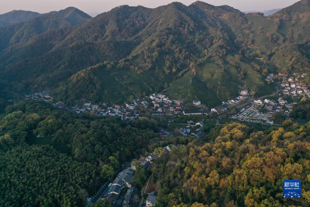 浙江省杭州市西湖風(fēng)景名勝區龍井村(2023年3月15日攝,無(wú)人機照片)。