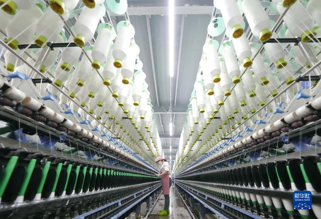 4月9日,工人在河北省青龍滿(mǎn)族自治縣朱杖子鄉朱杖子村一家紡織企業(yè)生產(chǎn)車(chē)間工作。