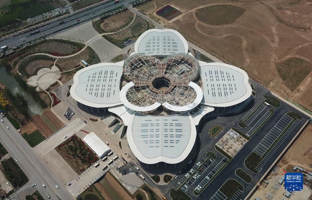 這是4月9日拍攝的投入使用的昆明國際花卉拍賣(mài)交易中心菏澤分中心(無(wú)人機照片)。