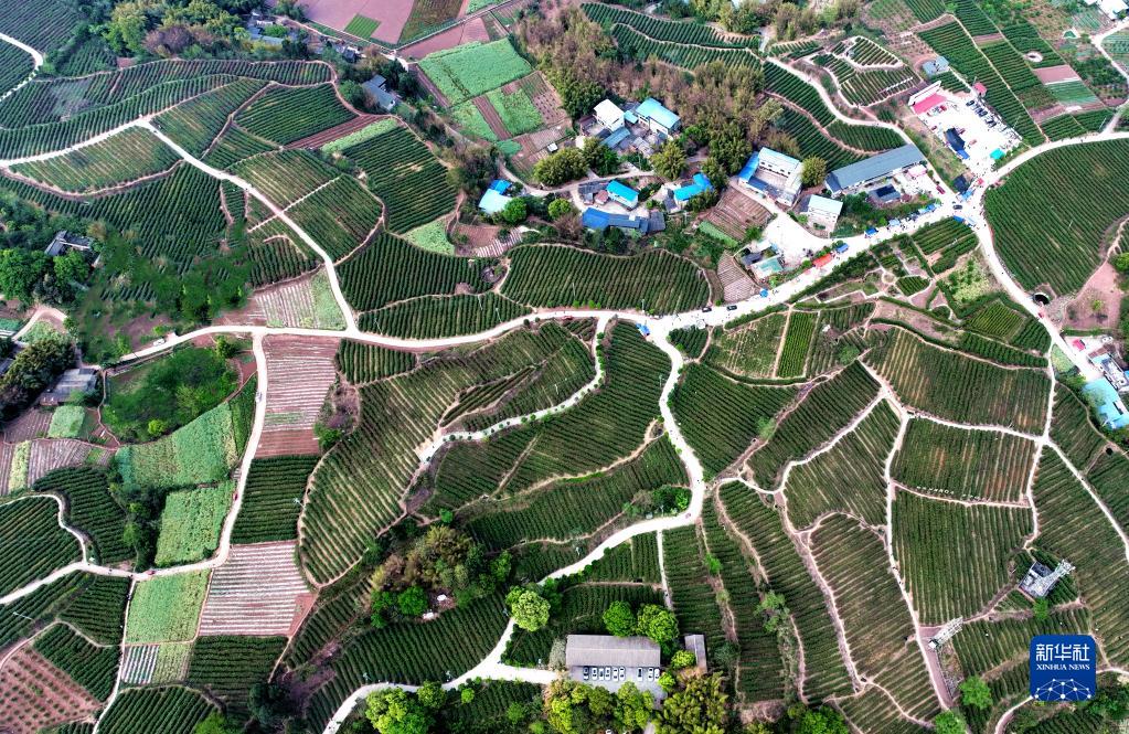 4月9日拍攝的四川省眉山市仁壽縣藕塘鎮食用玫瑰花種植基地(無(wú)人機照片)。