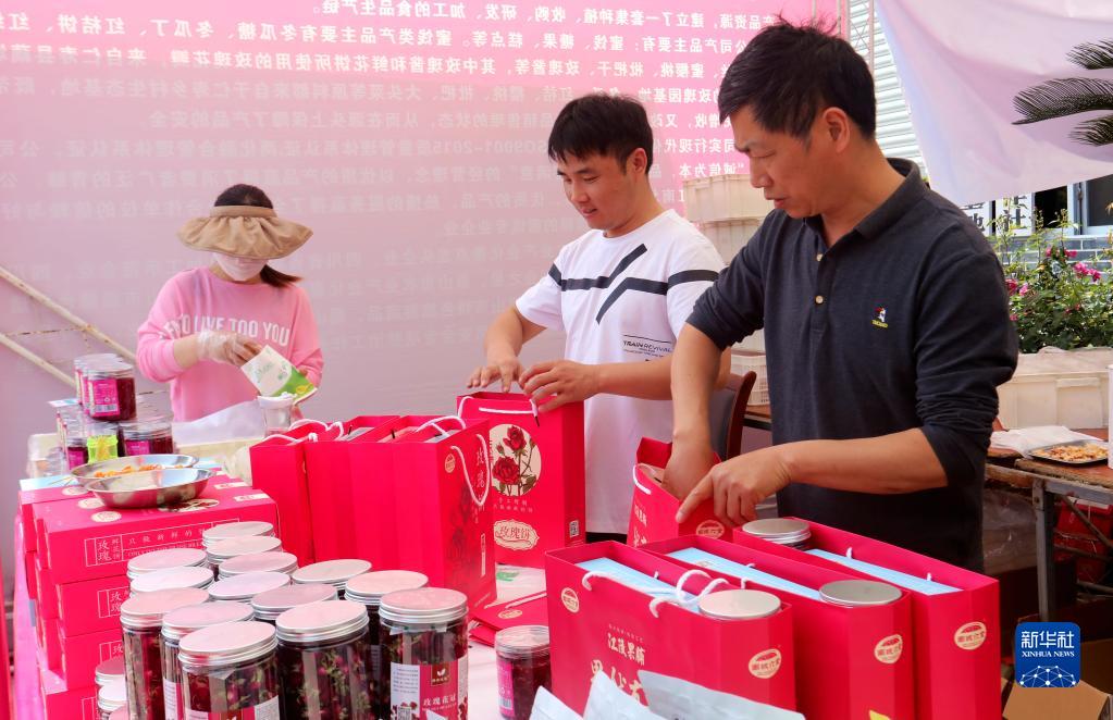 4月9日,游客在四川省眉山市仁壽縣藕塘鎮食用玫瑰種植基地購買(mǎi)玫瑰花產(chǎn)品。