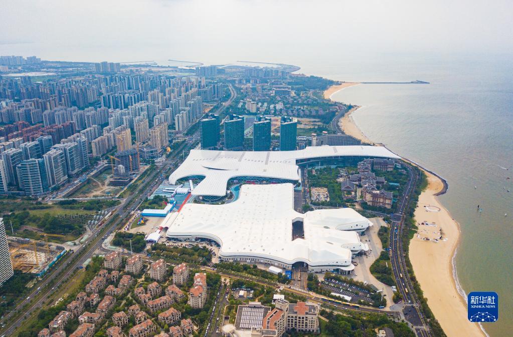 4月10日拍攝的第三屆中國國際消費品博覽會(huì )舉辦地——海南國際會(huì )展中心(無(wú)人機照片)。