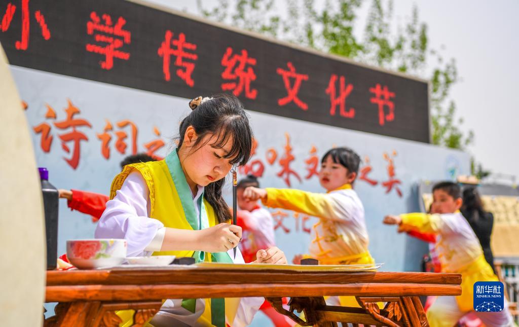 當日,以“徜徉詩(shī)詞之海,品味文韻之美”為主題的傳統文化節在天津小學(xué)舉行。學(xué)生們在老師的指導下參與國學(xué)朗誦、京劇選段表演、書(shū)畫(huà)展示等活動(dòng),感受傳統文化的魅力。