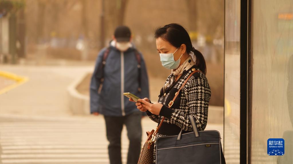 4月10日,哈爾濱市民在等待公交車(chē)。