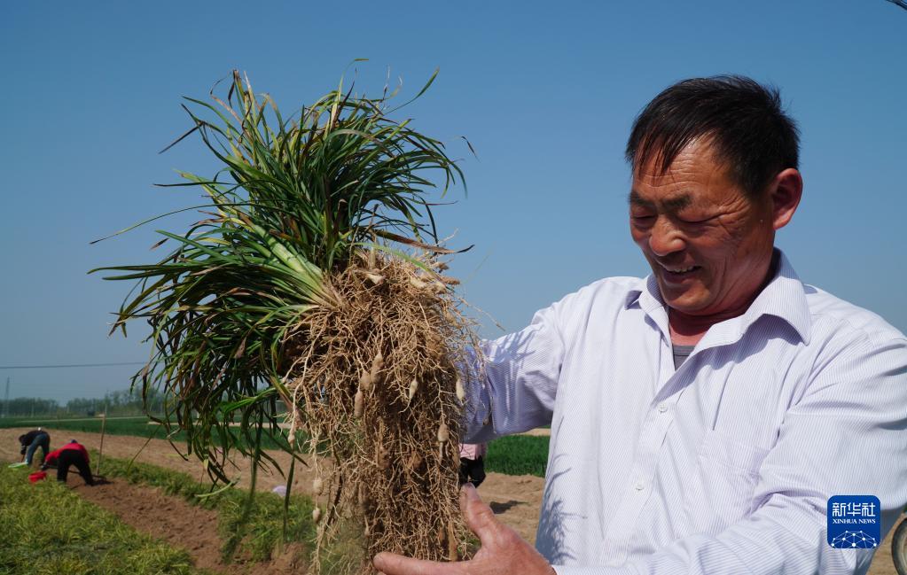 4月10日,在山東省單縣高老家鄉,一名麥冬種植戶(hù)在查看麥冬長(cháng)勢。