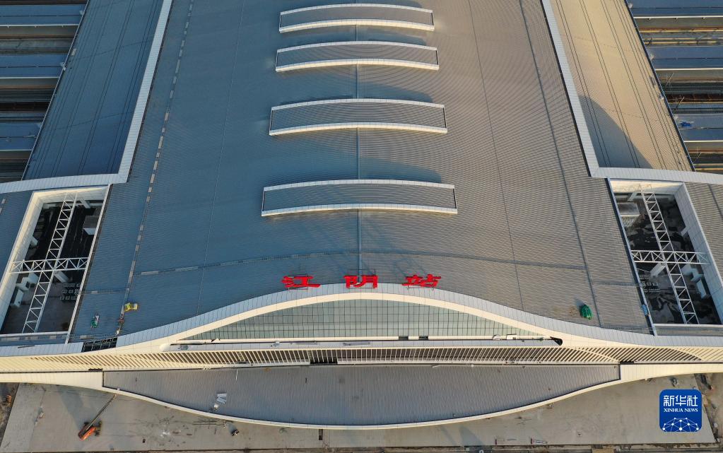 4月10日拍攝的滬寧沿江高鐵江陰站站房(無(wú)人機照片)。
