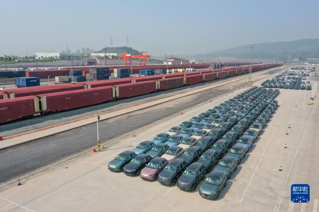 當日,伴隨著(zhù)一聲汽笛長(cháng)鳴,一列裝載重慶本地制造汽車(chē)的中歐班列從重慶魚(yú)嘴站駛出,該專(zhuān)列采用JSQ型車(chē)(專(zhuān)門(mén)運輸汽車(chē)整車(chē)的鐵路貨物車(chē)輛)。這些汽車(chē)約一周后將運抵哈薩克斯坦阿騰科里站。