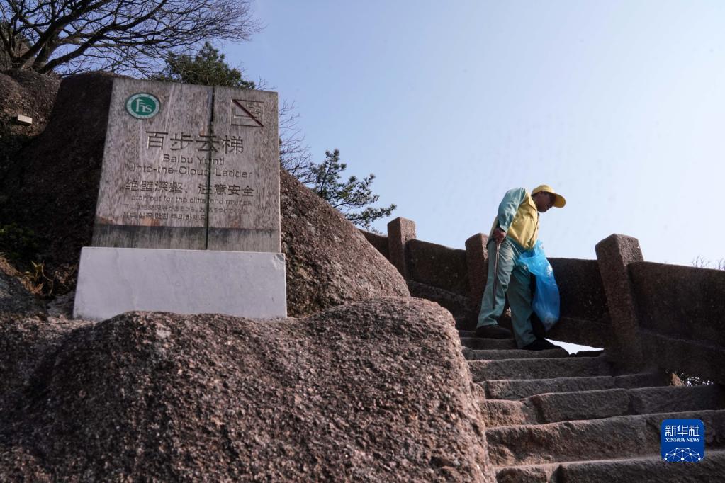 在安徽黃山風(fēng)景區,有這樣一群特殊的環(huán)衛工,他們常年攀爬在懸崖峭壁間清理垃圾。玉屏環(huán)衛所的李培生是他們中的一員,20多年來(lái),李培生累計放繩長(cháng)度達1800公里,除了巡查并清理垃圾,還經(jīng)常幫助游客撿拾掉下懸崖的物品,2012年被評為“中國好人”。黃山風(fēng)景區一共有18名像李培生這樣的放繩工,他們用辛勤的汗水守護著(zhù)黃山的美麗。